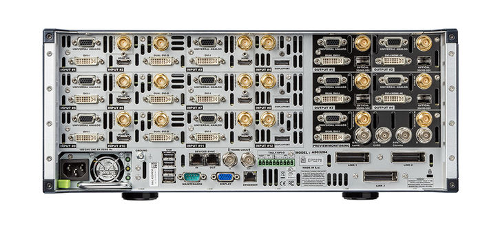 Output plugs: HD15, DVI-I DL, 2x 3G-SDI and Analog SDTV (4x BNC)